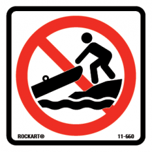 3 x 3 Decal - "No Hand Launch/Small Boat Launch (2009 Symbol)", Wht/Blk/Red, EG