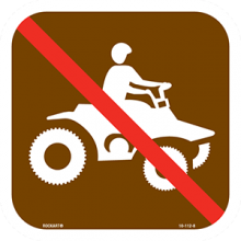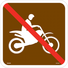 Alum. Sign - "NO E-BIKES, w/ Symbol & Text", Wht/Brn/Red