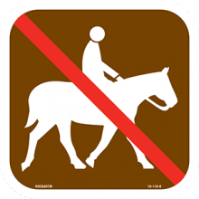 Alum. Sign - "No Horseback/ Equestrian", Wht/Brn/Red