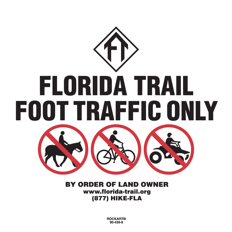 8 x 8 x .080 Alum. Sign - "Florida Trail - Foot Traffic Only"
