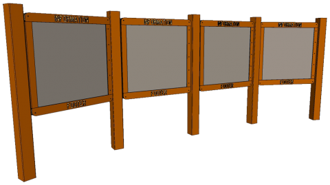 This 4-Panel Kiosk is also available with a shed-style roof (#03-470) or, if you prefer, a gable-style roof w/ a straight layout (#03-444). If you are looking for a non-angled version of this kiosk, see #03-468.