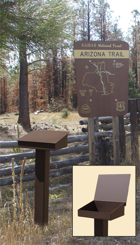 This registration box is also available as an add-on option (#03-710) and can be installed to most 4x4, 5x5 or 6x6 vertical posts (including all ROCKART Message Center Kiosks).