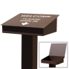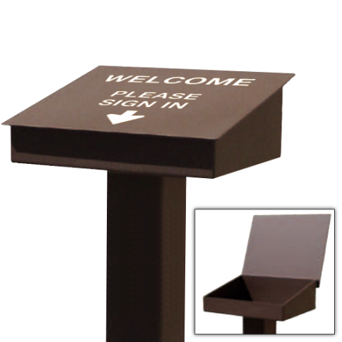 Standing 42" tall, this durable .125" thick steel Registration Box will help protect sign-in books and brochures from the elements. The generous 14.75 W x 14.25 D hinged lid is ideal for a reminder message or other informative call to action (sold separately, contact us for more details).
