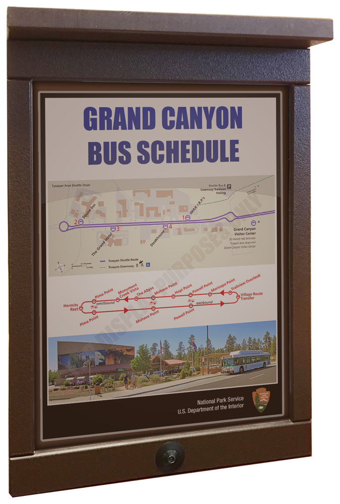 Rockart NOTIFIER® Fully-Enclosed, Single-Page Display for posting Bus Pickup Schedules, Visitor Rules, Admission Fees, etc.