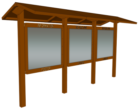 This 3-panel Message Center Kiosk is also available with a shed-style roof (#03-760), or even without a roof (#03-722).