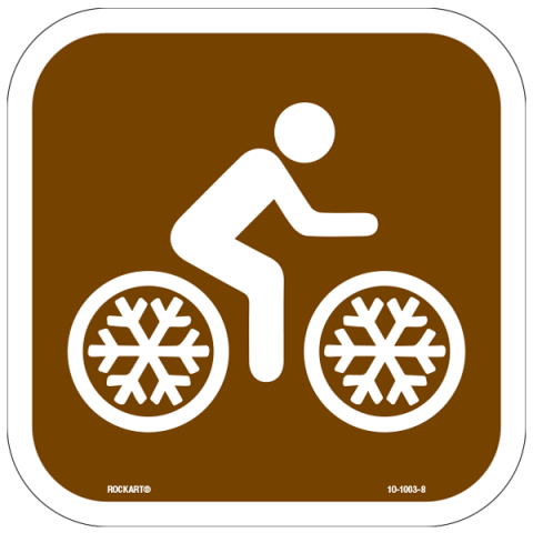 10-1003-SizeAlum Sign - "Fat Tire Snow Bicycle/Bike Symbol" (no text), Wht/Brn