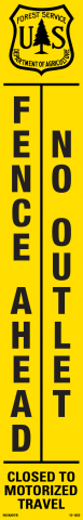 10-1022 3 x 18 Strip Decal - "Fence Ahead No Outlet - Closed To Motorized Travel", W/ USFS Logo, Yel/Blk, EG