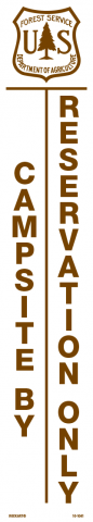 10-1041 3 x 16 Strip Decal - "Campsite By Reservation Only", W/ USFS Logo, Wht/Brn, EG