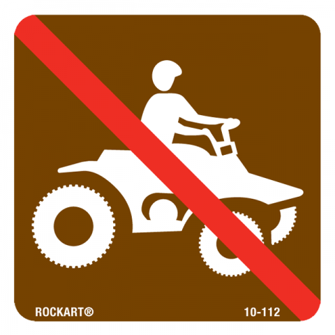 10-112No ATVs decal. 3 x 3, white/brown/red. Reflective.