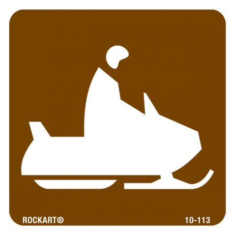 10-113Snowmobiles decal. 3 x 3, white/brown. Reflective.