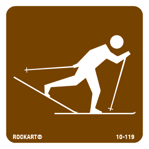 10-119Cross country skiing decal. 3 x 3, white/brown. Reflective.