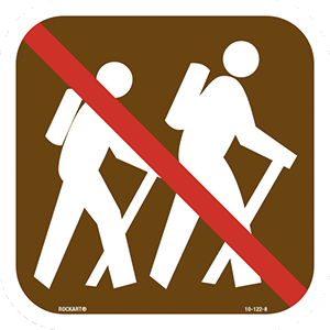 10-122-SizeAlum. Sign - "No Hikers/Hiking", Wht/Brn/Red