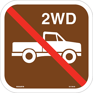 10-144-SizeAlum. Sign - "No 2WD Trucks", Wht/Brn/Red