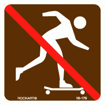 10-175No skateboarding decal. 3 x 3. White/brown/red. Fully reflective.