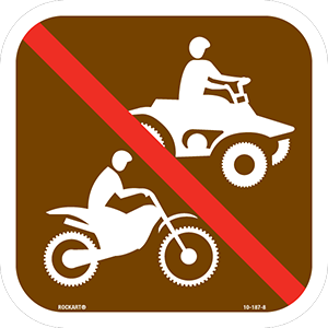 10-187-SizeAlum. Sign - "No ATVs Or Dirt Bikes", Wht/Brn/Red