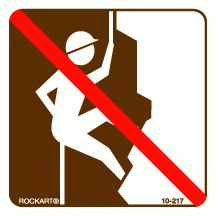 10-217No technical rock climbing. 3 x 3 decal. White/brown/red. Reflective.
