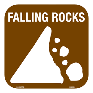 10-233-SizeAlum. Sign - "Falling Rocks", Wht/Brn