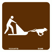 10-246Dog sledding. 3 x 3 decal. White/brown. Reflective.
