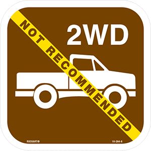 10-264-SizeAlum. Sign - "2WD Vehicles Not Recommended", Wht/Brn/Yel