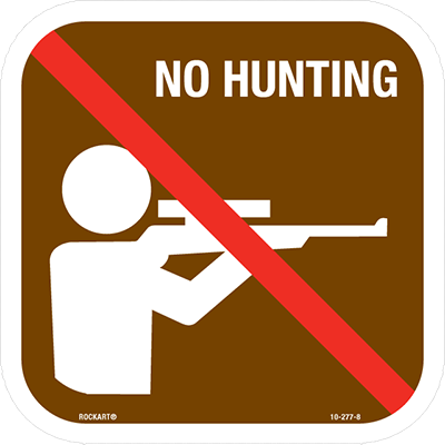 10-277-SizeAlum. Sign - "No Hunting", Symbol w/ Text, Wht/Brn/Red