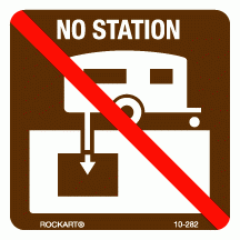 10-282No sanitary station decal. 3 x 3. White/brown/red. Reflective.