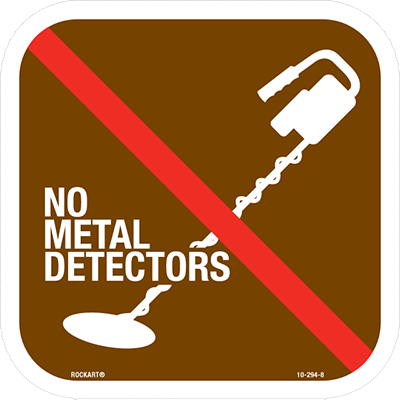 10-294-SizeAlum. Sign - "No Metal Detectors", Wht/Brn/Red, EG
