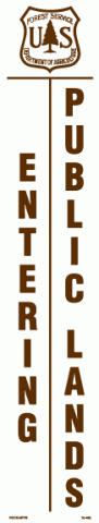 10-4603" x 16" Strip Decal: Entering public lands. US Forest Service logo. White/brown. Reflective. Also see our part number 10-459 for "leaving".