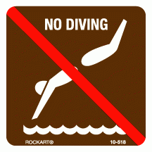 10-518No diving - with text. 3 x 3 decal. White/brown/red. Reflective.