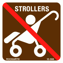 10-566No strollers. Graphic and text. 3 x 3 decal. White/brown/red. Reflective.