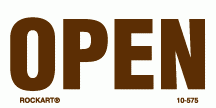 10-575Open. 3 x 1-1/2 decal. White/brown. Reflective.