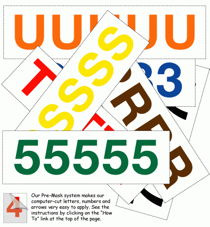 5-in Tall Computer Cut Lettering, Strip of 5, Reflective (Number 4, 02-Yellow)