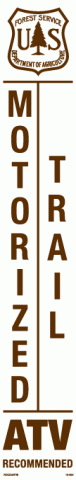 10-6643" x 18" Strip Decal. Motorized trail. ATV recommended. With US Forest Service logo at top. White/brown. Reflective.