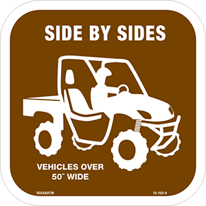10-703-SizeAlum. Sign - "Side By Sides - Vehicles over 50 inches wide", Wht/Brn