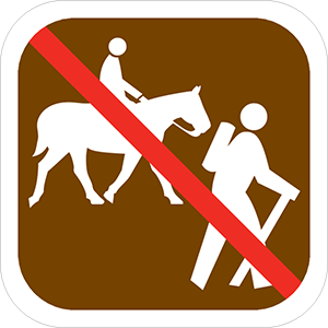 10-708-SizeAlum. Sign - "No Horses / Hikers", Wht/Brn/Red