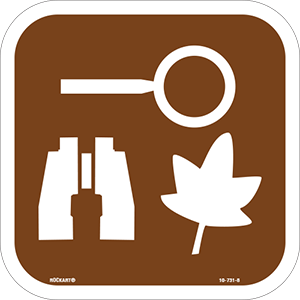 12 x 12 x .080 Alum. Sign - Natural Study Area: Symbols depicting "Magnifying Glass, Plant Leaf, Binoculars", Wht/Brn, EG |