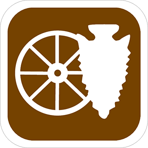 10-732-SizeAlum. Sign - "Cultural Interest" (Wagon Wheel, Arrowhead), Wht/Brn