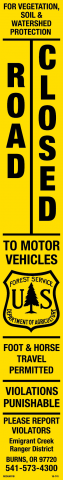 10-7413 X 22 Strip Decal - "For Vegetation, Soil & Watershed Protection-Road Closed", USFS Logo, Yel/Blk, Reflective