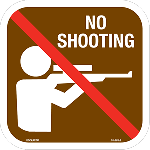 10-763-SizeAlum. Sign - "No Shooting" Symbol w/ Text, Wht/Brn/Red