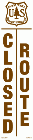 10-776-013" x 12" Strip Decal. Closed route. With the US Forest Service logo. White/brown. Reflective.