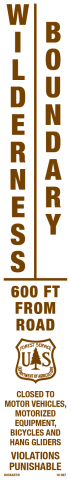 10-8072.375 X 16 Strip Decal - "Wilderness Boundary - 600 Ft From Road", USFS Logo, Wht/Brn, Reflective, Digital