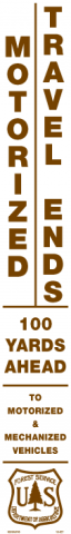 10-8273 X 22 Strip Decal - "Motorized Travel Ends", USFS Logo, Wht/Brn, Reflective