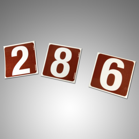 3 X 3 Decal - Individual Numeric Decals (0-9), Wht-Brn, Reflective