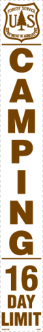 10-8573 X 22 Strip Decal - "Camping 16 Day Limit", USFS Logo, Wht/Brn, Reflective