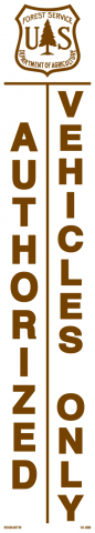 10-888 3 x 16 Strip Decal - "Authorized Vehicles Only", w/USFS Logo, Wht/Brn, EG