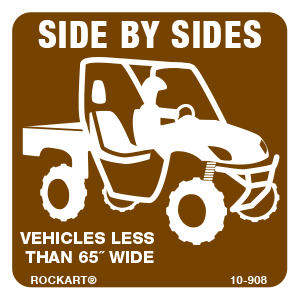 10-908 3 x 3 Decal - "Side By Sides - Vehicles Less Than 65" Wide", Wht/Brn, EG