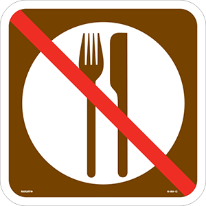 10-954-SizeAlum. Sign - "No Food Services" (symbol only), Wht/Brn/Red