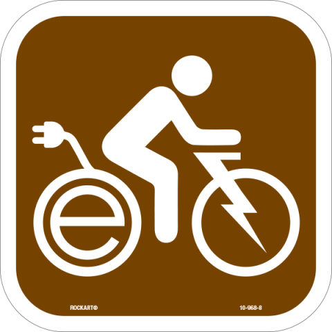 10-968-SizeAlum Sign - "Electric E-Bicycle / E-Bike Symbol" (no text), Wht/Brn