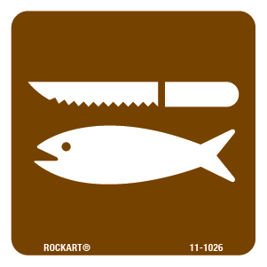 11-1026 3 x 3 Decal - "Fish Cleaning (2009 Symbol)", Wht/Brn, EG