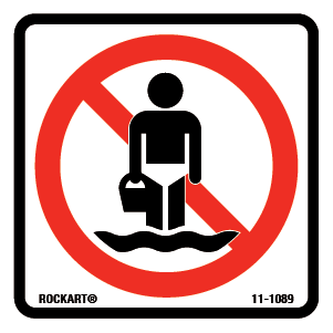 11-1089 3 x 3 Decal - "No Wading (2009 Symbol)", Wht/Blk/Red, EG