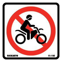 11-110 3 x 3 Decal - "No Dirt Bike/Motor Bike Trail (2009 Symbol)", Wht/Blk/Red, EG